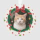 Festive custom pet Christmas ornament featuring a green and red wreath on a holly leaf and berry background. Replace the cat picture in the wreath with a photo of your cat or dog. It would also work great with a picture of your child or a family photo.