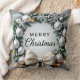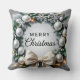 Elevate your holiday home decor with this exquisitely designed luxury throw pillow featuring a stunning, ultra-realistic Christmas wreath. The design captures a timeless elegance, showcasing a lush, frosted blend of deep green holly and snow-dusted cedar branches. The wreath is beautifully adorned with shimmering silver and pure white glass baubles, intricate crystal-like snowflakes, and delicate clusters of pearlescent berries. The look is completed by a voluminous, soft champagne satin bow resting gracefully at the bottom. Centered within the ring, the elegant script "Merry Christmas" adds a festive focal point. Perfect for adding a touch of sophisticated cheer to your living room sofa, entryway bench, or bedroom during the winter season. This premium cushion makes an ideal hostess gift, Christmas present, or a luxurious update to your own modern festive display. Search optimized for "Silver Christmas Decor," "Luxury Holiday Pillow," and "Elegant Wreath Design."