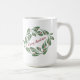 Lovely greeting on a mug. Classy green and red wreath design and Merry Christmas greeting.