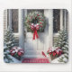 Merry Christmas Wreath On House Door Mouse Mat