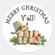 Merry Christmas Y'all Country and Western Rustic Classic Round Sticker
