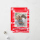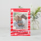 Merry Christmas in black flowing cursive. Customise your name and add your photo. Option to add a yearly update on the back, or just Christmas 2020 ( use the personalise button). Festive bright red background with modern textured stripes, and bright white starbursts. Your photo will have a star burst in the bottom left corner, so will look great if the bottom left of your pic is darker. Original graphic design.