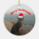 Christmas holiday ornament with a cat photo and a sea.