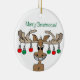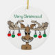 Celebrate the festive holiday season with this "Merry Christmoose" cartoon ceramic ornament.