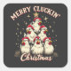 Merry Clucking Christmas Funny Chicken Roosters Square Sticker