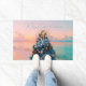 Celebrate the holidays with this gorgeous tropical-themed Christmas doormat. The design is a photo image of a stunning Christmas tree featured at the Orlando Museum of Art during the annual Festival of Trees exhibit. The beautiful holiday tree is adorned with coastal-inspired decorations including starfish, miniature mermaids, soothing pastel-coloured ornament balls in blue, green, and ivory, and a large fish with branches of coral for the tree topper. The background is a calm beach landscape in soothing pastels. The text reads "Merry Coastal Christmas." Please browse our complete collection of coastal, tropical, and Florida-themed holiday cards and gifts. Special design requests accepted. (Photography and design by Glenda Motsavage.)