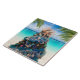 Celebrate the holidays with this gorgeous tropical-themed Christmas ceramic tile. The design is a photo image of a stunning Christmas tree featured at the Orlando Museum of Art during the annual Festival of Trees exhibit. The beautiful holiday tree is adorned with coastal-inspired decorations including starfish, miniature mermaids, soothing pastel-coloured ornament balls in blue, green, and ivory, and a large fish with branches of coral for the tree topper. The background is a secluded tropical beach scene. Tile available in two size options. Please browse our complete collection of coastal, tropical, and Florida-themed holiday cards and gifts. Special design requests accepted (Photography and design by Glenda Motsavage.)