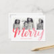 Send out your holiday greetings in style with this lovely 3-photo holiday postcard featuring hand lettered calligraphy artwork and watercolor. Save money on envelopes and add a photo to the back of your card.