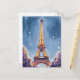 Merry Eiffel Tower | Paris France Christmas Watercolor Holiday Postcard