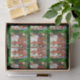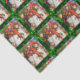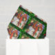 This product has a design with Merry Elves Wrapping a Present. This is a vintage design with the elves happily wrapping a large Christmas present. Adding to the effect is a modern combination with the green snowflake background.