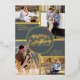 Merry Everything 4 Photo Collage Grey and Gold Foil Holiday Card