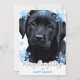 Merry Everything & Happy Always ! Send Christmas or Holiday greetings with this adorable Black Labrador Christmas Card adorned with blue watercolor snowflakes.