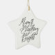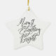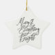 Bring a touch of timeless holiday charm to your décor with this “Merry & Everything Bright” ceramic star ornament. Designed in a clean, modern style, this elegant piece features crisp black script lettering on a smooth white ceramic star, finished with a metallic gold hanging cord for a warm, festive touch. Its minimalist aesthetic blends beautifully with Scandinavian, neutral, farmhouse, and classic Christmas themes.