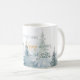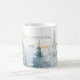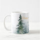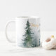Watercolor winter trees in shades of green paired with script and modern typography personalise coffee mug.