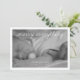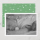 Personalised Christmas cards for family featuring the words "merry everything", on cute and delicate handwritten like white typeface, and a simple white border framing a black and white photo template of a sleeping baby. The back of these cute Christmas flat photo cards feature a fun pattern, with green and white confetti.
