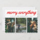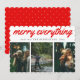 Merry Everything Red Script Three Photo Holiday Card