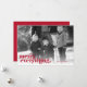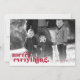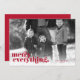 Curvy serif typeface gives these cards a modern retro feel. Design features "Merry Everything" in holiday red with your family name or message. White gradient box helps the text show up against your photo, but can be deleted if not necessary.