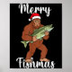 Merry Fishmas Bigfoot Fishing Funny Sasquatch Sant Poster