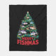 Merry Fishmas Christmas Tree Lights Fish Fishing Fleece Blanket