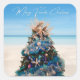Merry Florida Christmas Tropical Beach and Tree Square Sticker