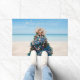 Celebrate the holidays with this gorgeous tropical-themed Christmas doormat. The design is a photo image of a stunning Christmas tree featured at the Orlando Museum of Art during the annual Festival of Trees exhibit. The beautiful holiday tree is adorned with coastal-inspired decorations including starfish, miniature mermaids, soothing pastel-coloured ornament balls in blue, green, and ivory, and a large fish with branches of coral for the tree topper. The background is a calm beach landscape. The text reads "Merry Florida Christmas." Please browse our complete collection of coastal, tropical, and Florida-themed holiday cards and gifts. Special design requests accepted. (Photography and design by Glenda Motsavage.)