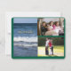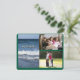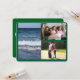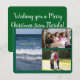 Celebrate a Merry Christmas, Florida style! The greeting "Celebrate a Merry Florida Christmas!" is displayed in white against the backdrop of the deep blue sea with its gentle waves. This design occupies half of the card, providing space for two of your family photos on the opposite side. To upload your images, simply click 'Personalise details'. On the card's back, there's a Florida-themed Christmas message personalised with your family name. It says, "Wishing you a very Merry Christmas from Florida," in the 'Brightest' font, which features a lively script with a dynamic baseline and smooth curves. Underneath, the word "Love" introduces your family surname, all set against a festive green background with the greeting in white.