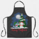 Introducing the “Merry Fluffmas Cute Cat Christmas” apron, a delightful addition to your holiday festivities that perfectly captures the whimsical spirit of the season. Set against a charming night sky backdrop adorned with twinkling snowflakes and a glowing full moon, this apron is a feast for the eyes. At the heart of the design, a beautifully decorated Christmas tree stands tall, creating a warm and inviting atmosphere. In front of the tree, a cheerful blue cartoon male cat takes center stage, donning an adorable green elf hat and a vibrant red bow tie that adds a splash of playful color.