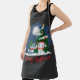 Beside him, a precious white cartoon female kitten captures hearts in her festive Santa Claus hat, adorned with a red bow decorated in white polka dots and Christmas bells. The scene is so irresistibly cute that it is sure to bring smiles and laughter to all who lay eyes on it. At the bottom of this charming design, the phrase “Merry Fluffmas” is elegantly scripted in festive red calligraphy, ensuring that this apron is not only functional but a true statement piece during your holiday gatherings.