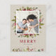 Affordable custom printed holiday photo postcards with simple templates for customisation. This festive design features an elegant watercolor floral border of holly leaves and poinsettia flowers in red, green and burgundy colours on a faux linen burlap background. Personalise it with your photos and custom text. Reverse side has a custom holiday greeting or use the space to add additional photos. Postcard back includes your return address for quick and easy mailing! Use the design tools to choose any background colours, edit the text fonts and colours, upload more photos and create a one of a kind holiday photo card design.