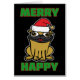 Cute cartoon pug Christmas card. Green lettering.