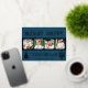 Create your own luxe real rose gold foil holiday greeting postcards with this simple yet elegant four photo design in dark blue and rose gold with a stylised tree for Christmas and a minimalist Menorah for Hanukkah. Merry Happy Chrismukkah! Add your four favourite photos using the simple template uploader and watch your pictures appear with rounded corners framed in deep blue on a broad rose gold foil strip. MERRY HAPPY at the top of these holiday postcards in a bold yet whimsical font is balanced by CHRISMUKKAH in a slightly different stylised font and flanked by the Christmas tree and Menorah, all printed in elegant rose gold foil on the deep blue background. Each personalised postcard reverses to reveal a dark blue border, an option for you to add your return address in the upper left and a template to add a custom holiday greeting in the middle. Created with you in mind, celebrating Christmas and Hanukkah together in an interfaith family, these dark blue and real rose gold foil CHRISMUKKAH photo postcards are a creative and casual way to spread holiday cheer this year.