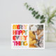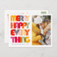 Merry Happy Everything Colourful Typography Photo Holiday Postcard