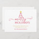Modern Simple Script Minimalist Business Holiday Cards. Printed or Digital Downloadable Christmas Cards. Merry Holiday Red Gold Tree with Your Branded Corporate Logo Christmas Holiday Cards. Modern elegant corporate holiday card featuring a red Christmas tree with gold star and an inclusive holiday greeting of Merry Holidays set in an elegant red hand lettering script calligraphy typography. Easily personalise by adding your company name, team members' names and branded corporate logo on the reverse side. If desired, any or all text fields may be changed to your own customised message on front and back. Design also available in this collection with Merry Christmas or Happy Holidays instead of Merry Holidays.