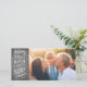 Spread cheer this year this modern and chic holiday photo card that features one-of-a-kind hand lettered typography. It says "Merry Kisses and warm holiday wishes" on a chalkboard background.