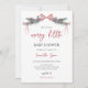 Spread holiday cheer with our Merry Little Baby Shower Invitation! This invite features a charming garland of evergreen branches adorned with soft pink bows and festive red berries, creating a delightful blend of seasonal elegance and warmth. Perfect for celebrating your soon-to-arrive bundle of joy during the holiday season. BBS937