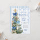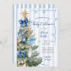 Merry Little Christmas Boy Baby Shower Invitation, Quirky Stripes Blue Bow Baby Shower Invite