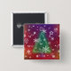 A scattering of white snowflakes, holly leaves and berries, stars, and pine trees against a glowing background of red, orange, gold, and purple, with a soft green Christmas tree shape in the middle.