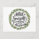 Merry Little Christmas Watercolor Wreath Holiday Postcard
