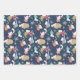 A set of three whimsical wrapping paper sheets, each featuring a different illustration: