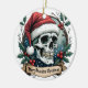 Celebrate a Christmas with a twist of dark humor! This unique ornament features a grinning skull in a Santa hat, surrounded by holly and snowflakes, with the words "Merry Macabre Christmas." Ideal for those who love to combine the festive spirit with a gothic edge, making it a standout addition to any unconventional holiday decor.