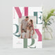 This chic and stylish Christmas holiday card features your photo with merry in modern lettering in magenta/pink and green shades. The reverse side features your photo and message on a green background. Personalise it for your needs. You can find matching products at my store.