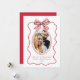 Merry Married Red Wavy Frame Bow Photo Christmas Holiday Card