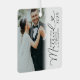 Newlywed keepsake christmas ornament featuring a simple white background, a photo either side of the bride & groom, the saying 'merry and married' in a elegant script heart font, their names, and the year.