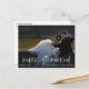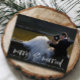 Wedding photo holiday postcard. The front of the card is designed to showcase your favourite horizontal orientation photo, with the words 'merry & married' at the bottom in a cool, on trend modern watercolor brush script overlay typography, and your names, wedding date and location at the bottom. The back of the card allows you to type in a personal holiday message of thanks, features a QR code link to your wedding website, and includes your return address. CREATOR'S NOTE: The "vellum overlay" on this product is a digital effect." Copyright Anastasia Surridge for Anastasia Designs, all rights reserved.