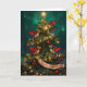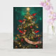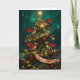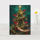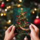 A group of playful baby dragons with shimmering scales and red wings perch on a glowing Christmas tree deep in an enchanted forest. Twinkling fairy lights and shiny ornaments wrap around the tree, while a golden star glows at the top. A soft “Merry Christmas” banner rests across the lower branches, completing the magical holiday scene.