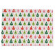 A retro-style mid-century Christmas tree pattern with with triangles, stars, snowflakes and diagonal stripes. Colours include; red, green, pink and white.
