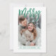 Merry Modern Green Script Newlywed Photo Holiday Card