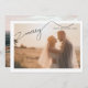 This beautiful, modern Merry Modern Typography Name 2 Photo Christmas Holiday card features your horizontal wedding photo behind a white border, with the word 'Merry' in a beautiful modern calligraphy typography with decorative flourishes on the ends of the words. The card is personalised with your names in a modern sans serif font followed by the year. The text is black and should work with most photos, unless they are extremely dark. The back of the card features a second favourite wedding photo. A beautiful card for your first Christmas as newlyweds! Copyright Anastasia Designs, all rights reserved.