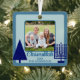 Create your own cute Chrismukkah ornament in navy and light blue and featuring your photo, front and back, for a one of a kind family keepsake. From the simple navy blue Christmas tree to the matching navy blue Hanukkah menorah, this dark navy and pastel blue square metal ornament will commemorate your blended interfaith holidays. The easy to use picture template lets you add your photo where it is framed by a medium blue border which is repeated around the holiday ornament's edges. Add your name and the year on the front in dark blue where they are flanked on either side by the modern navy blue Christmas tree on the left and the navy blue Menorah on the right. The design is repeated on the reverse side of these metal ornaments which creates a cute Chrismukkah keepsake - personalize a new one with an updated photo every year or personalize a set for the entire family. These custom holiday Chrismukkah ornament in dark navy and light blue are a fun gift for yourself or as one of a kind personalized gifts for interfaith friends and family.