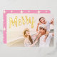 Merry Pink Retro Sparkle Gold Metallic Foil Holiday Card